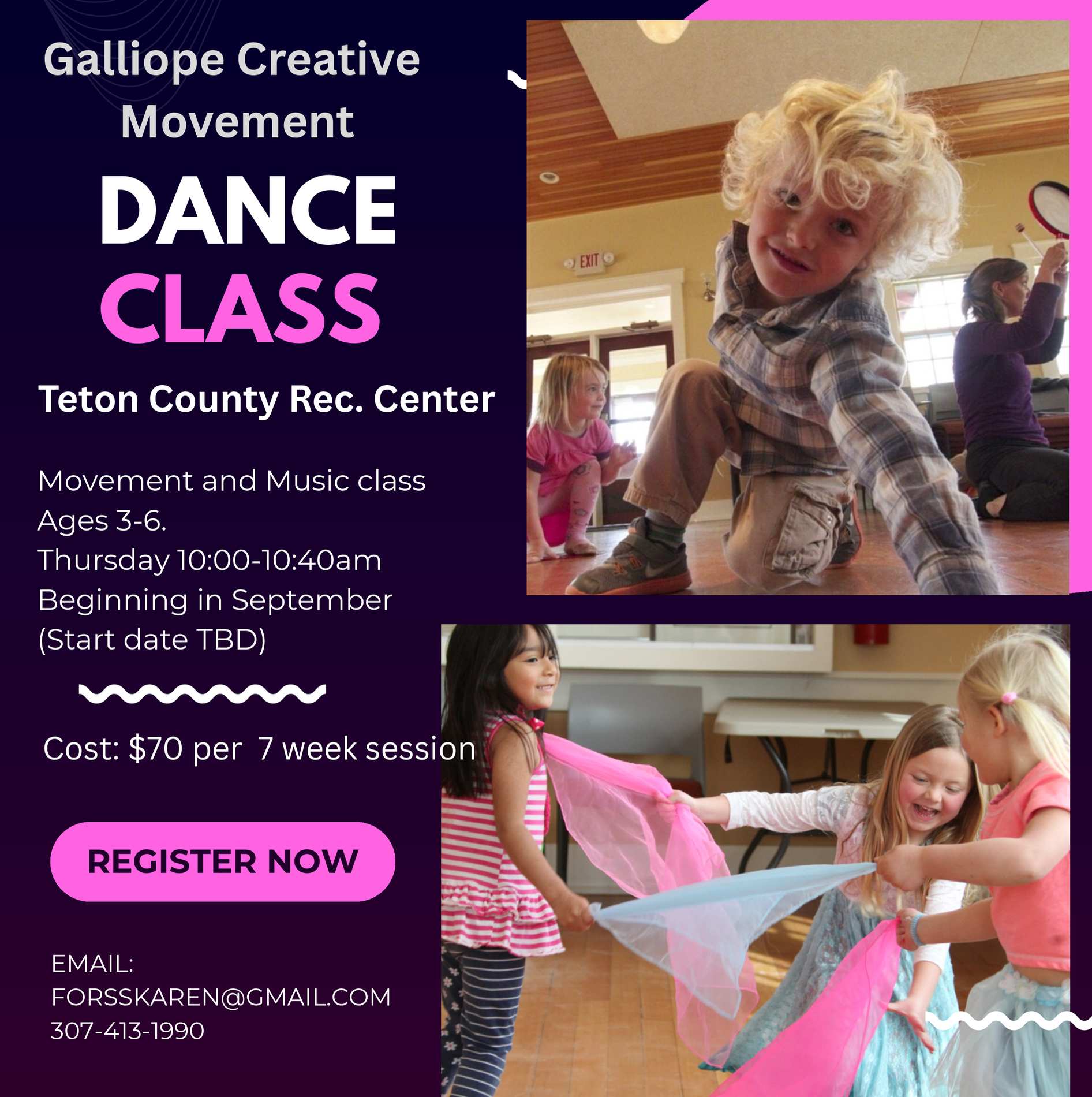 Let your little one explore the joy of movement and music in a nurturing environment designed just for them. Galliope Creative Movement's dance class welcomes children ages 3-6 to discover their natural rhythm through creative expression and play. In this supportive space, young dancers can build confidence, develop coordination, and connect with other children while having fun. Whether your child loves to twirl, march, or move to their own beat, this class celebrates each child's unique way of expressing themselves. It's a wonderful opportunity for families to introduce their children to the arts in an age-appropriate, encouraging setting.